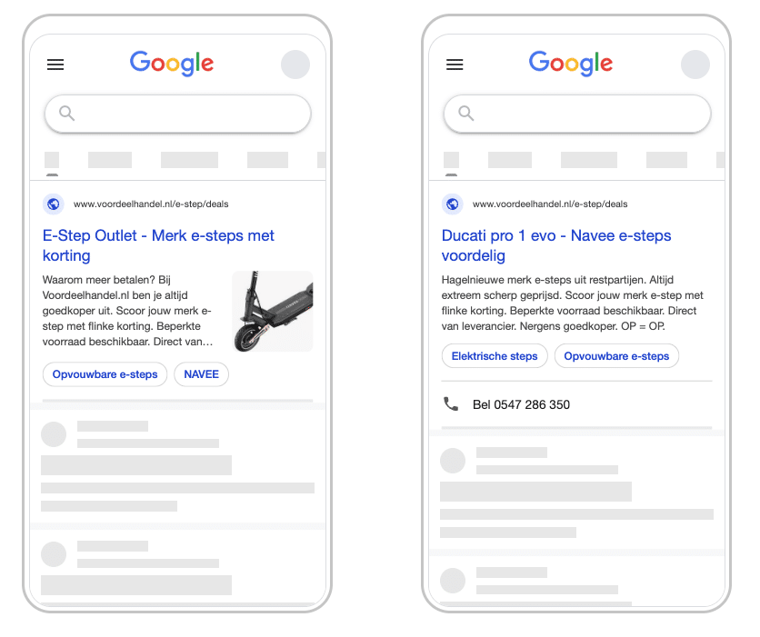Direct zichtbaar zijn op zoekwoorden rondom e-steps en accessoires. Gericht op koopintentie, zodat we vanaf dag één verkeer met aankoopintentie binnenhalen.